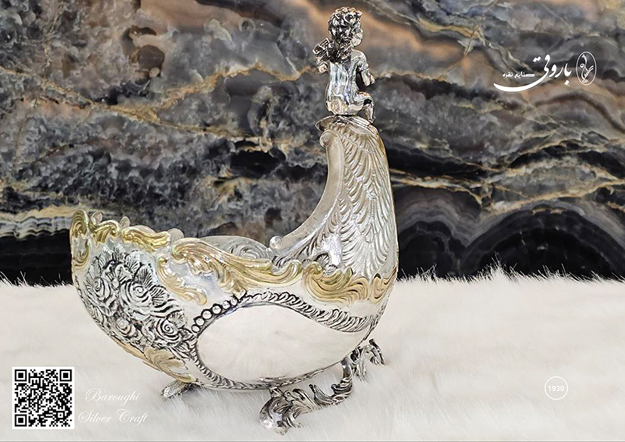 کشکول نقره مدرن آب طلا با مجسمه بچه فرشته